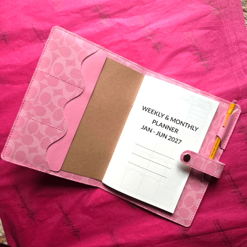 This stunning Pink Coach planner cover is very functional with three (3) extra card slots and 2 pockets (one on each side) to inset your planner or notebook and any extra paper.