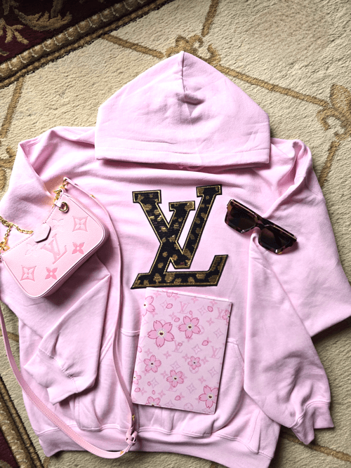 Be cozy and comfy, yet stylish in this light pink LV inspired hoodie and match it will all the pink! It's not an outfit, its a vibe.